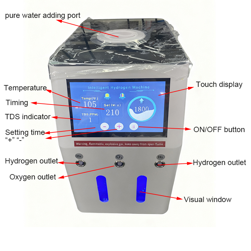 We have overcome the technical bottleneck of hydrogen production. In the process of hydrogen production, we need not to dispose a humidification bottle, avoiding the problems that the machine sprays water into the nostrils, bacterium grow in the humidification bottle, and the hydrogen purity reduces.