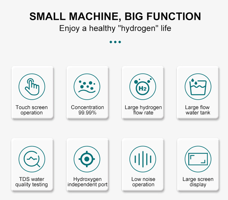Latest New Tech: SPE/ PEM dual chamber solutionWater tank volume: 2000mlSmart indicator, Simple Operation, Safety setting, easy process for elderly PeopleFeatures about Hydrogen Inhalation MachineHydrogen purity is more than 99.99%,which meets the requirements food additives.- 2. Sufficient Actual Flow Rate